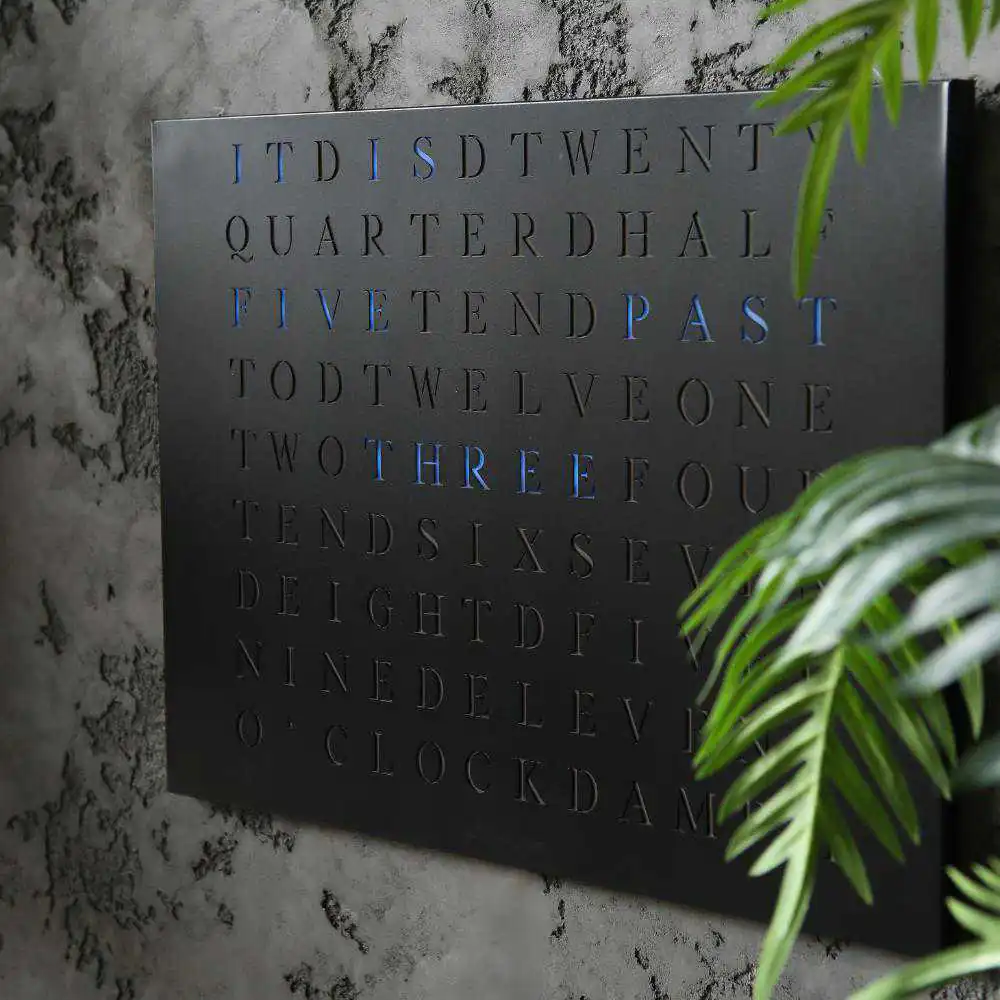 Die WordClock ist eine moderne Wanduhr, die die Zeit durch Licht und Sprache statt durch Zeiger oder Zahlen anzeigt. Ihre Oberfläche besteht aus einer Matrix von Buchstaben. Zu jedem Zeitpunkt leuchten bestimmte Wörter auf und bilden einen lesbaren Satz wie „Es ist halb acht“.